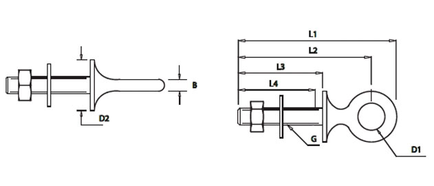 | Арт. № | G | D1 | D2 | B | L1 | L2 | L3 | L4 | Разрушающая нагрузка/КГ |
