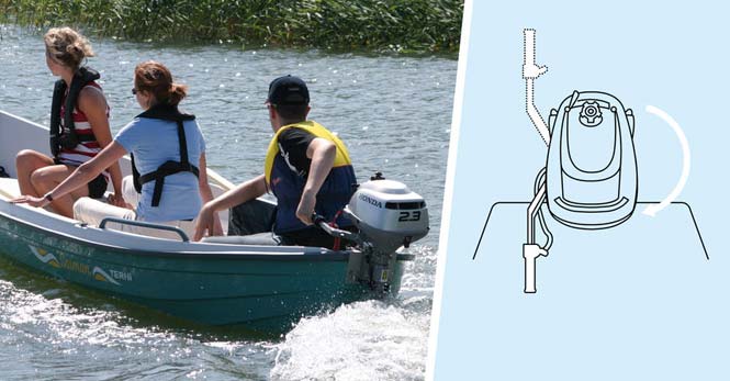 Обратите внимание на ваш гребной винт: После надежного крепления к лодке вы заметите, что двигатель очень легкий и его легко поднять из воды. Это значительно снизит риск повреждения гребного винта камнями или берегами. Когда вы сможете снова безопасно двигаться вперед, просто зафиксируйте его на месте.