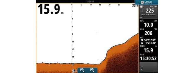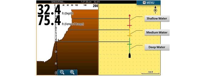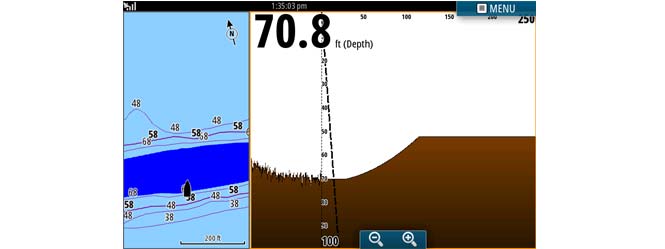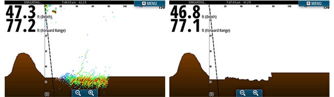 С 2D изображением эхолота донной области перед вашей лодкой.
