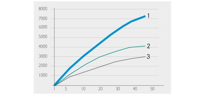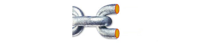Более высокая разрывная нагрузка этой цепи означает, что меньший диаметр обеспечивает такое же механическое сопротивление, как обычная цепь с большим диаметром. Это означает, что можно выбрать гораздо более длинную цепь, не увеличивая вес в цепном ящике.