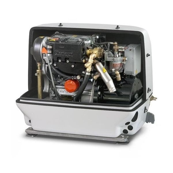 В комплект генератора входит звукозащитный стеклопластиковый кожух со звукоизоляцией из неопрена, панель дистанционного управления с кабелем 15 м, счетчик моточасов, помпа для смены масла, запасной импеллер и топливный фильтр.